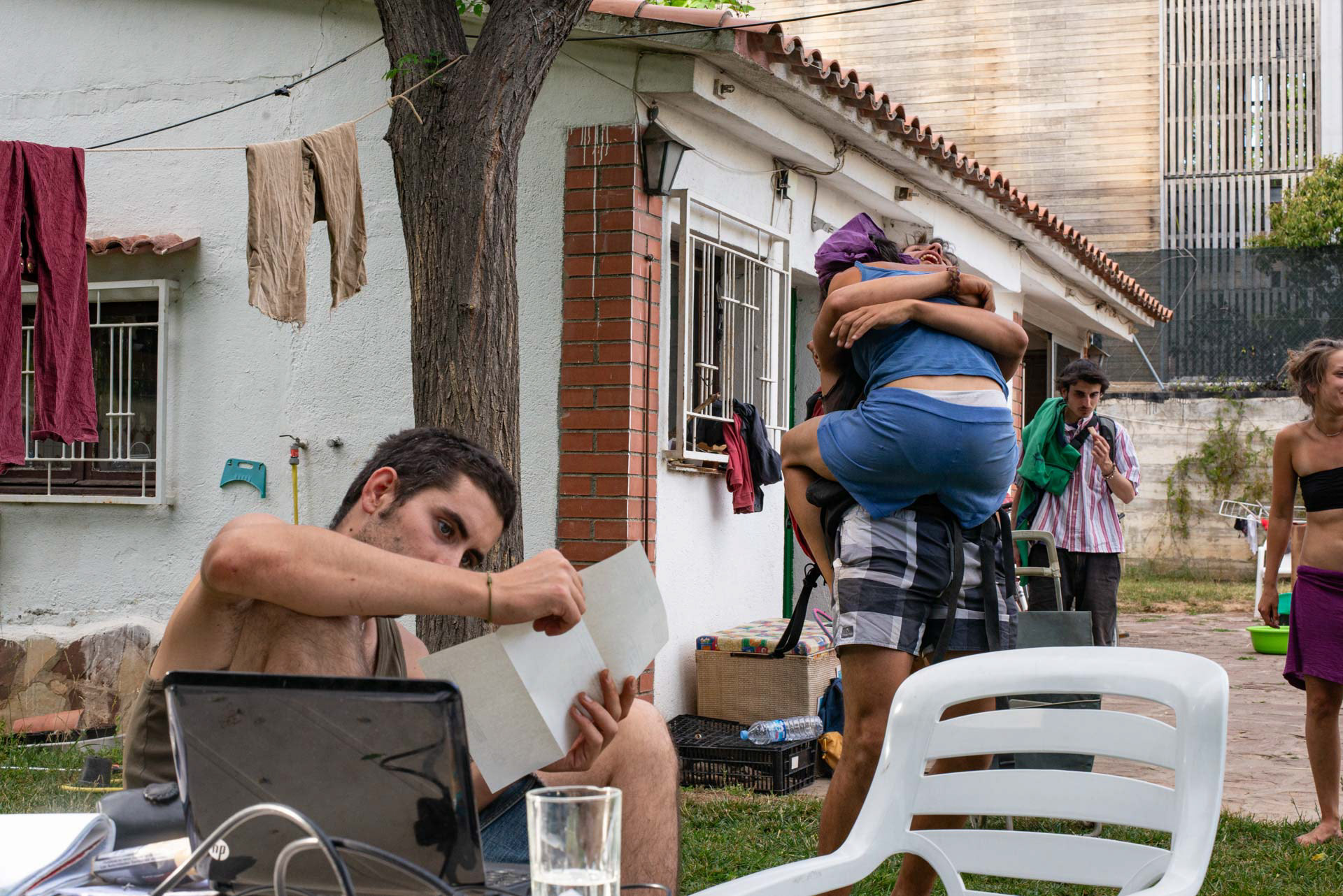 All’interno di questo contesto si sviluppa una realtà parallela e quasi invisibile. Alcuni villini disabitati vengono occupati illegalmente da gruppi di giovani che praticano forme di masoveria urbana, mettendo in discussione il concetto di proprietà privata e di abitare permanente. L’interno delle case occupate si configura come uno spazio fluido e instabile, attraversato da persone che arrivano e se ne vanno continuamente, in netto contrasto con l’immobilità e la rigidità dell’ambiente circostante.