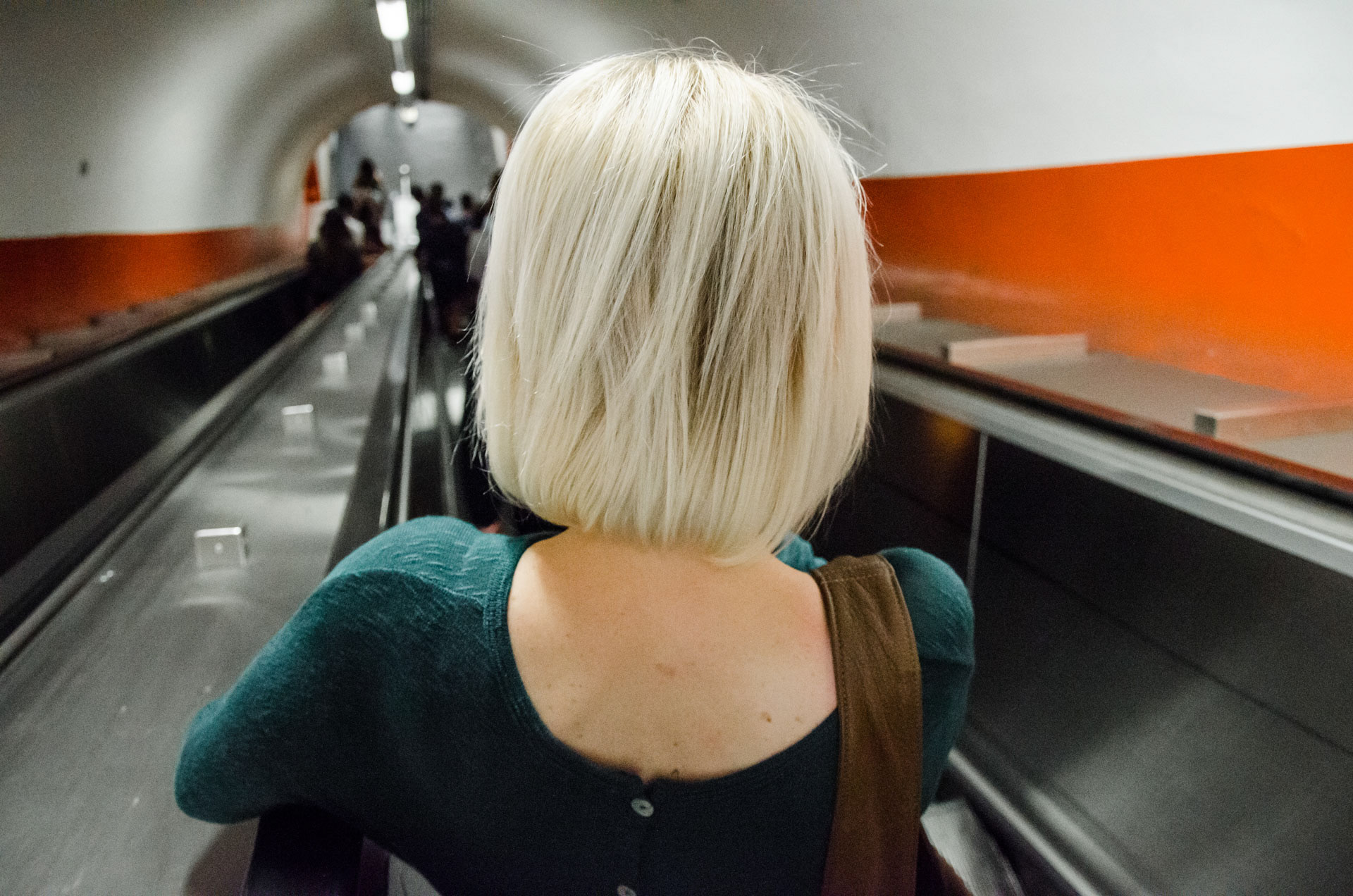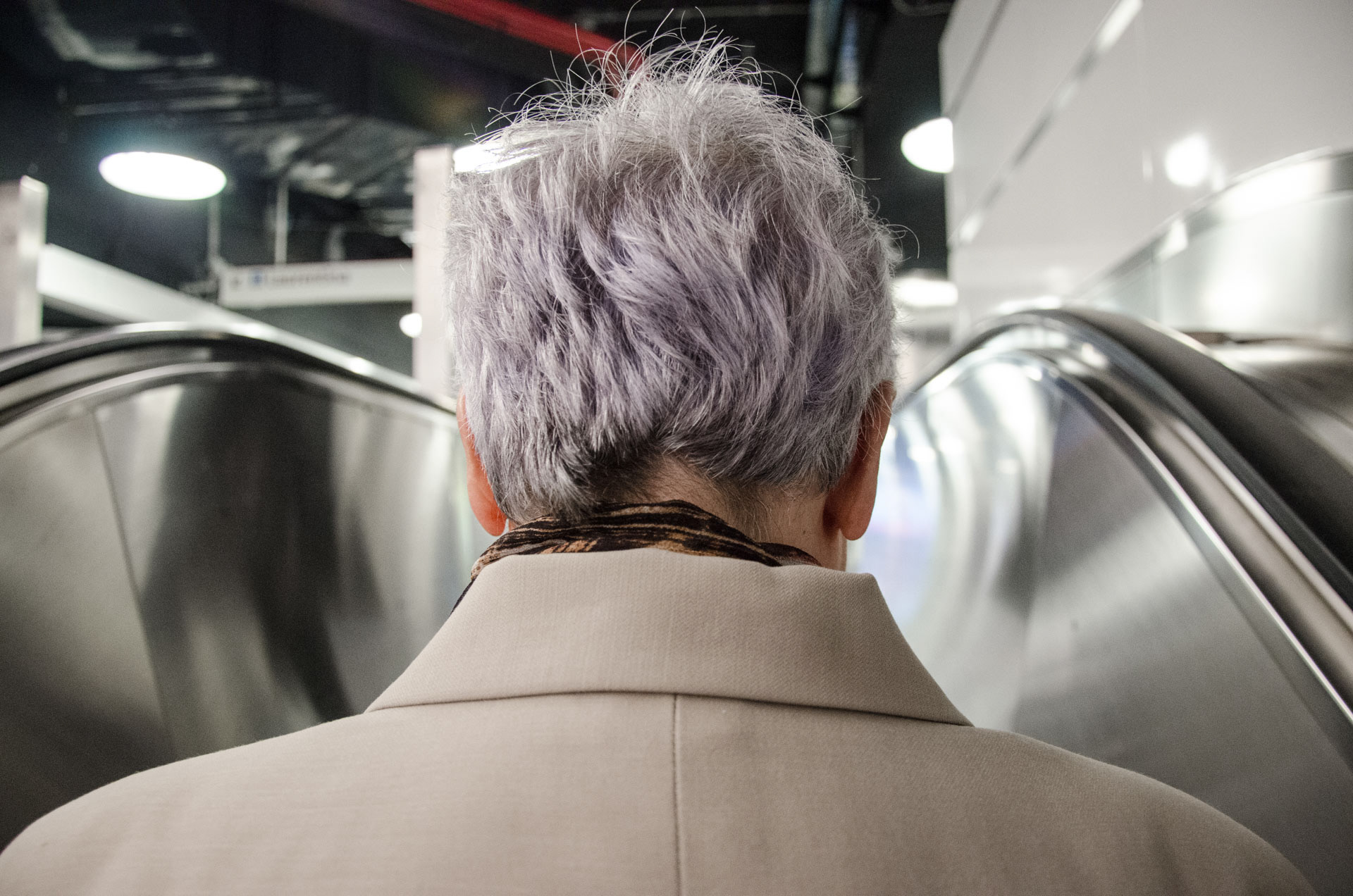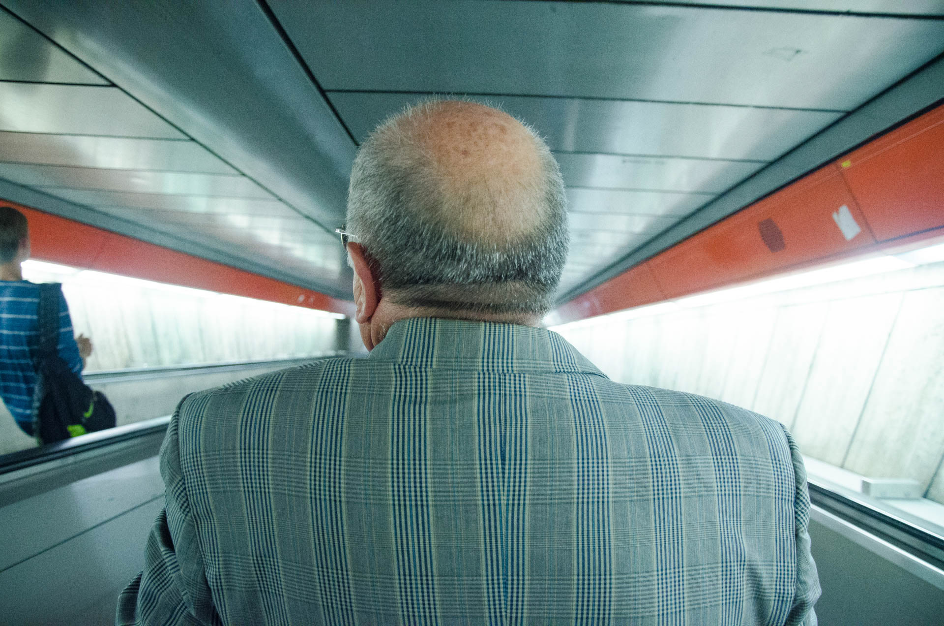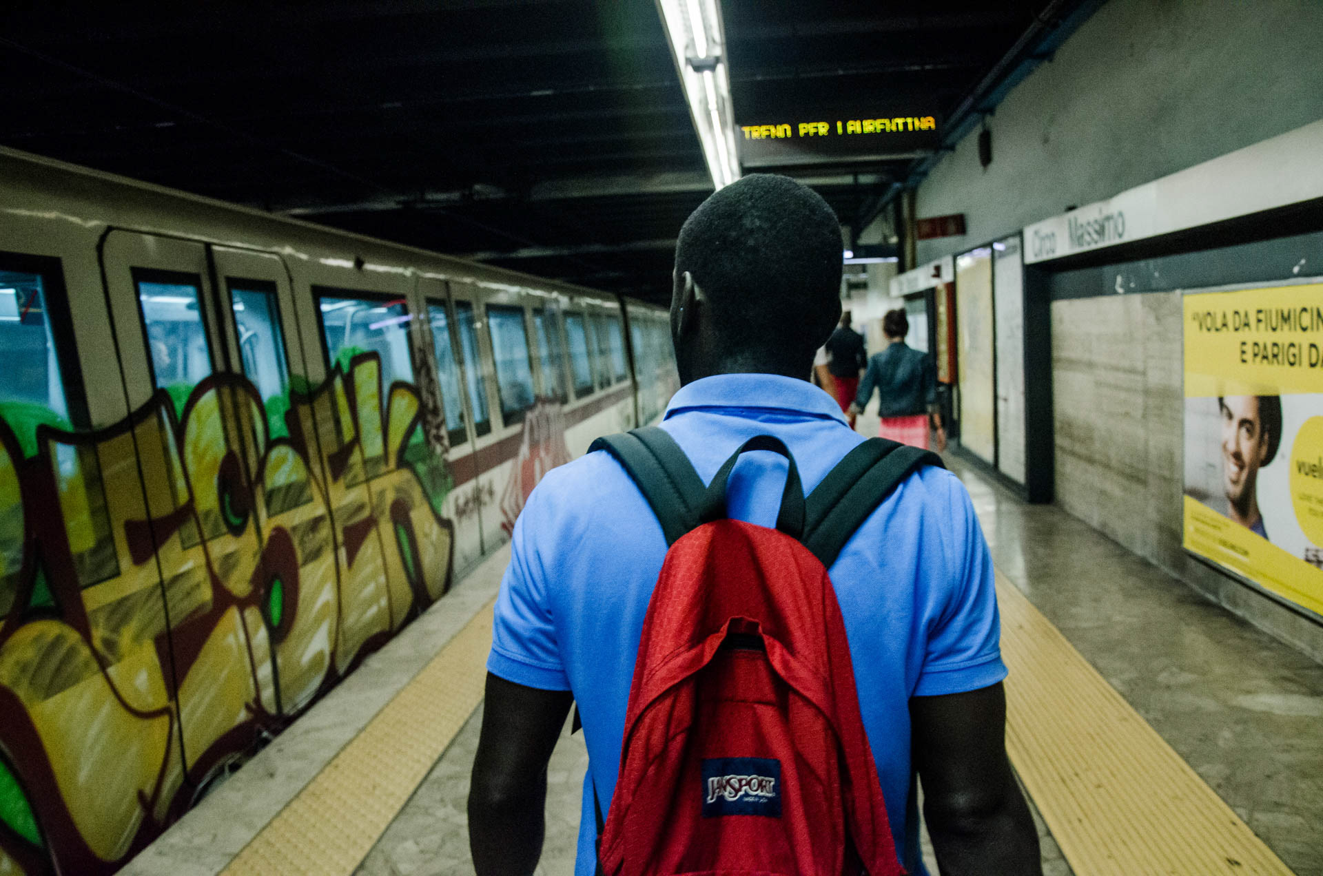 Tra il 2013 e il 2015 ho realizzato una serie di ritratti di spalle nelle metropolitane di Roma. L’idea è nata da un’osservazione quotidiana: prendevo la metro ogni giorno, più volte al giorno, e mi sono reso conto che nei percorsi obbligati delle stazioni, di fronte a sé si hanno solo persone di spalle. Dal tornello al vagone, si avanza sempre dietro qualcuno, condividendo lo stesso tragitto senza mai incrociarne lo sguardo. La stazione della metropolitana, paradigma del non-luogo, impone una direzione che genera una coreografia involontaria di corpi anonimi. Il progetto esplora il concetto di anonimato urbano e la distanza relazionale negli spazi metropolitani, restituendo una visione alternativa del ritratto, dove l’identità si gioca nell’assenza del volto.